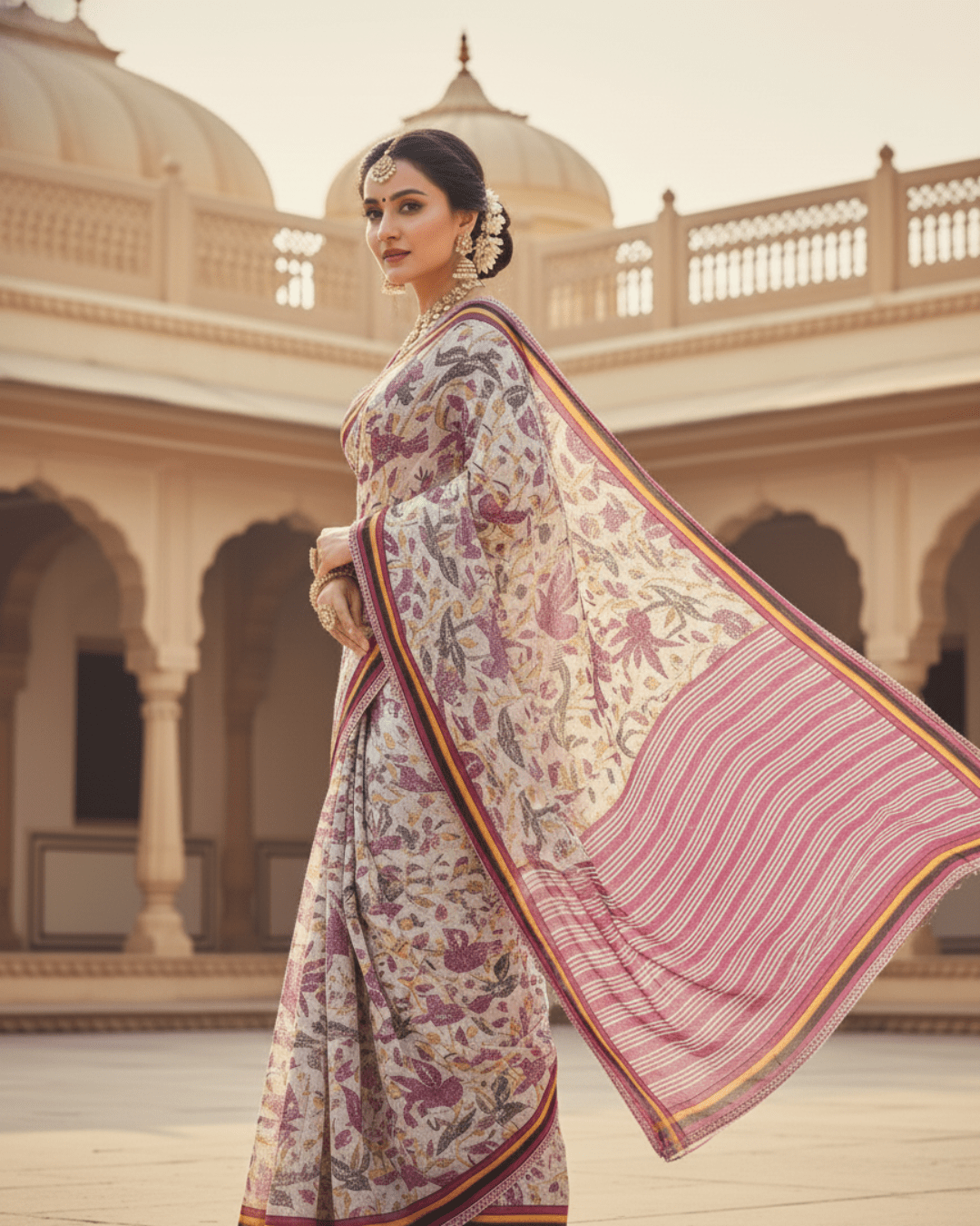 The soothing white base paired with delicate pink accents creates a fresh, graceful look suitable for all age groups. Easy to drape and gentle on the skin, this saree is ideal for daily wear, office wear, pujas, summer outings, casual occasions, and gifting.